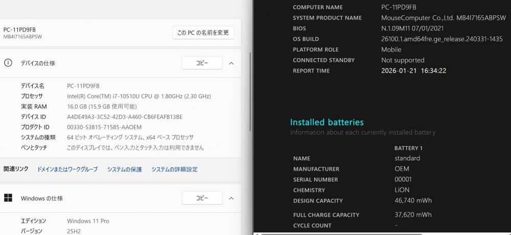 中古 フルHD 14型 マウスコンピューター Mouse Pro MB4I7 Windows11 第10世代 i7-10510U 16GB NVMe 512GB-SSD カメラ 無線Wi-Fi6 Office付き 中古パソコン 管:1722m