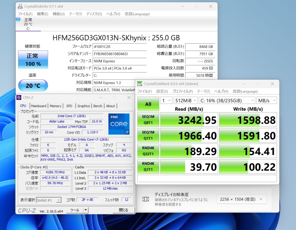 CPU:    超高速 Intel 10コア 卓越性能 第12世代Core i7-1265U 1.8Ghz、 10コア12スレッド (ターボ・ブースト利用時の最大周波数 4.8GHz)