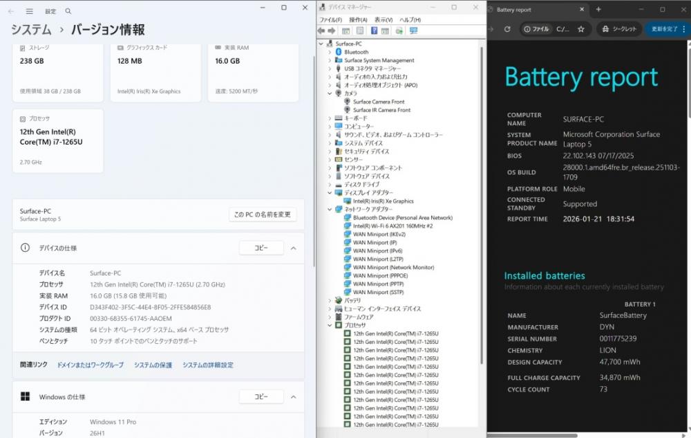 良品 2K対応 タッチ 13.5型 Microsoft Surface Laptop 5 Windows11 10コア 第12世代 i7-1265U 16GB NVMe 255GB-SSD カメラ 無線Wi-Fi6 Office付き 中古パソコン 管:0982w