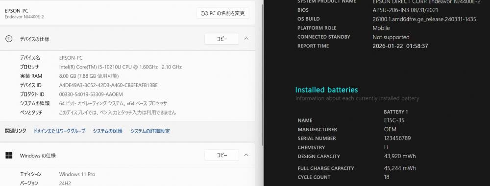 | 型番: EPSON Endeavor NJ4400E |