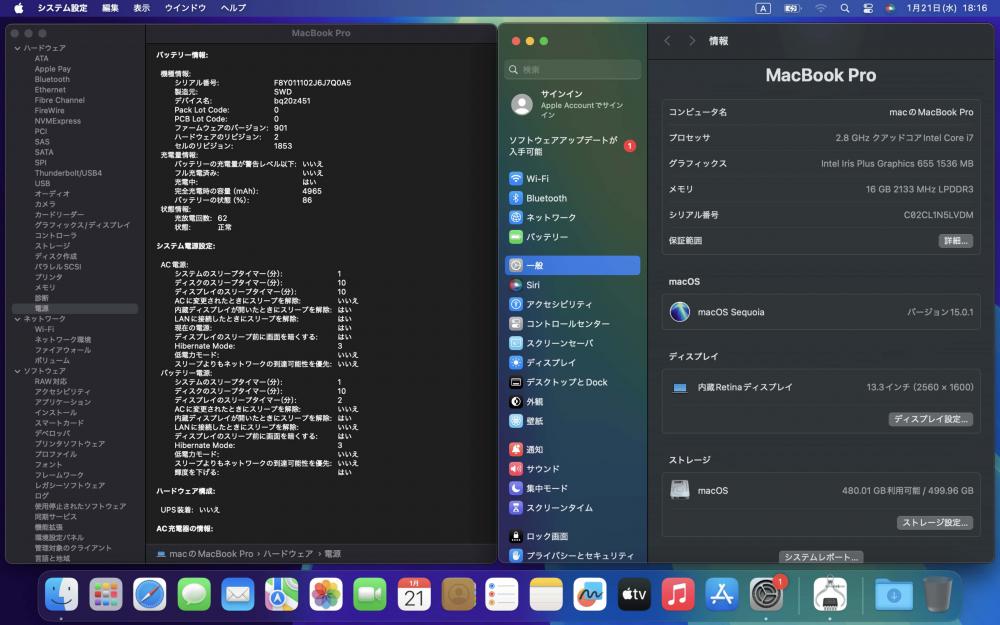 | リカバリー: (インターネットリカバリー macOS 10.13.6)あり、 いつでもパソコンを工場出荷時の状態に戻すことできます。 初心者でもご安心ください。 |