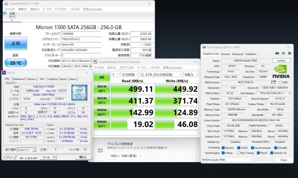 | ディスプレイ: フルHD 15.6インチ高輝度 LEDバックライト 1920 x 1080解像度 グラフィックス NVIDIA Quadro P620 搭載、大容量 4096M専用ビデオメモリーvRAM 快適使用体験! |