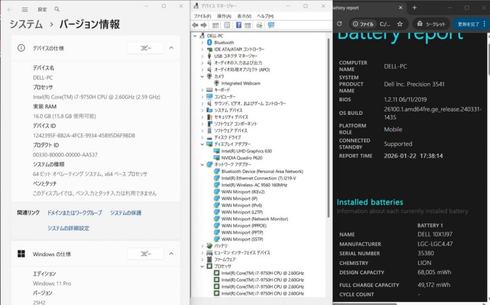 | 型番: DELL Precision 3541 |
