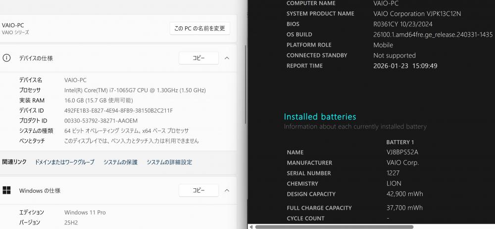 | 型番: SONY VAIO VJPK13C11N |