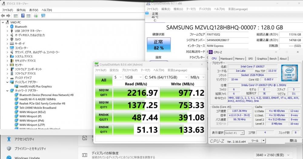 | CPU: 超高速 Intel 超高性能 第10世代Core i7-1065G7 1.3Ghz、 4コア8スレッド (ターボ・ブースト利用時の最大周波数 3.9GHz) |