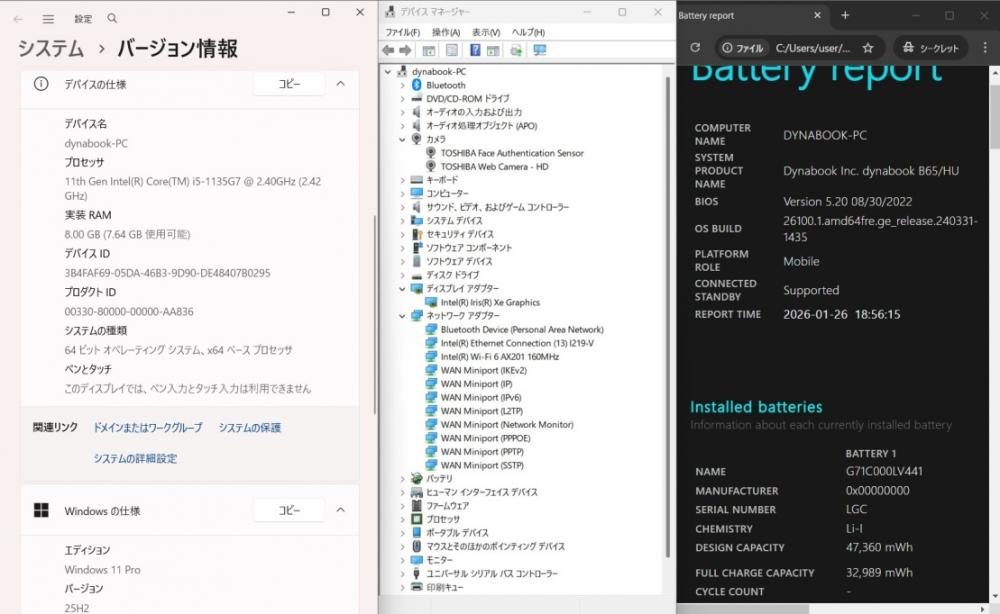 | 型番: TOSHIBA dynabook B65HU |