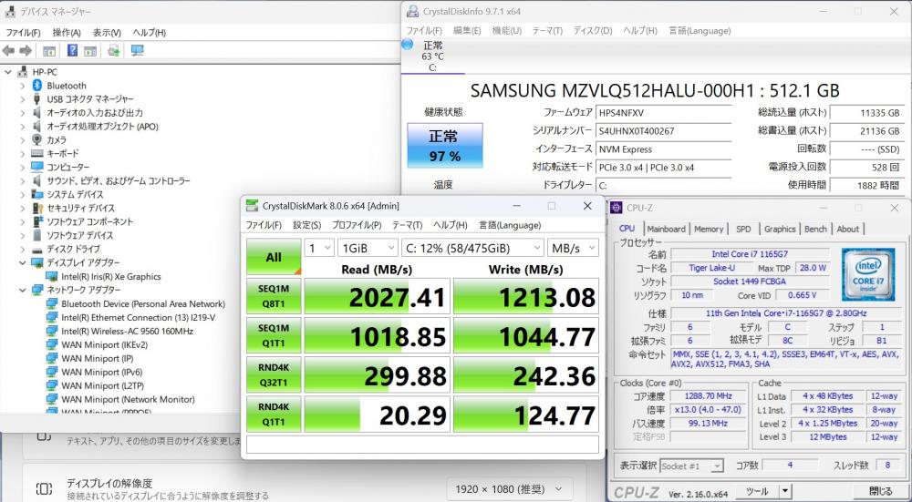 | CPU: 超高速 Intel 卓越性能 第11世代Core i7-1165G7 2.8Ghz、 4コア8スレッド (ターボ・ブースト利用時の最大周波数 4.7GHz) |