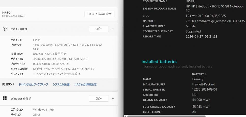 | 型番: HP EliteBook X360 1040 G8 2in1 |