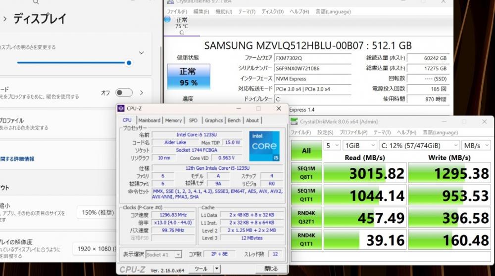 | CPU: 超高速 Intel 10コア 卓越性能 第12世代Core i5-1235u 1.3Ghz、 10コア12スレッド (ターボ・ブースト利用時の最大周波数 4.4GHz) |