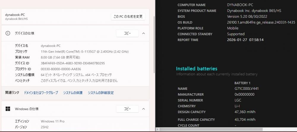 | 型番: TOSHIBA dynabook B65HS |
