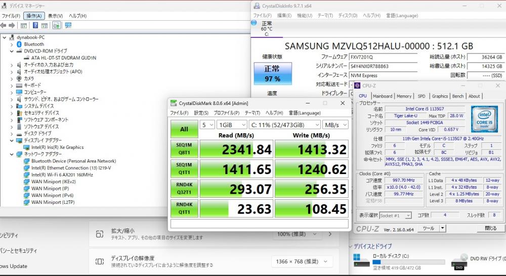 | CPU: 超高速 Intel 卓越性能 第11世代Core i5-1135G7 2.4Ghz、 4コア8スレッド (ターボ・ブースト利用時の最大周波数 4.2GHz) |