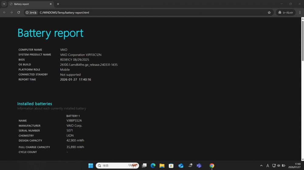 | 型番: SONY VAIO VJPJ13C12N |