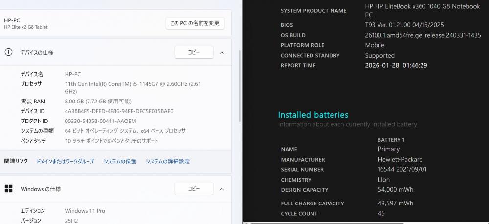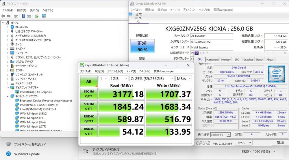 | CPU: 超高速 Intel 卓越性能 第11世代Core i5-1145G7 2.6Ghz、 4コア8スレッド (ターボ・ブースト利用時の最大周波数 4.4GHz) |