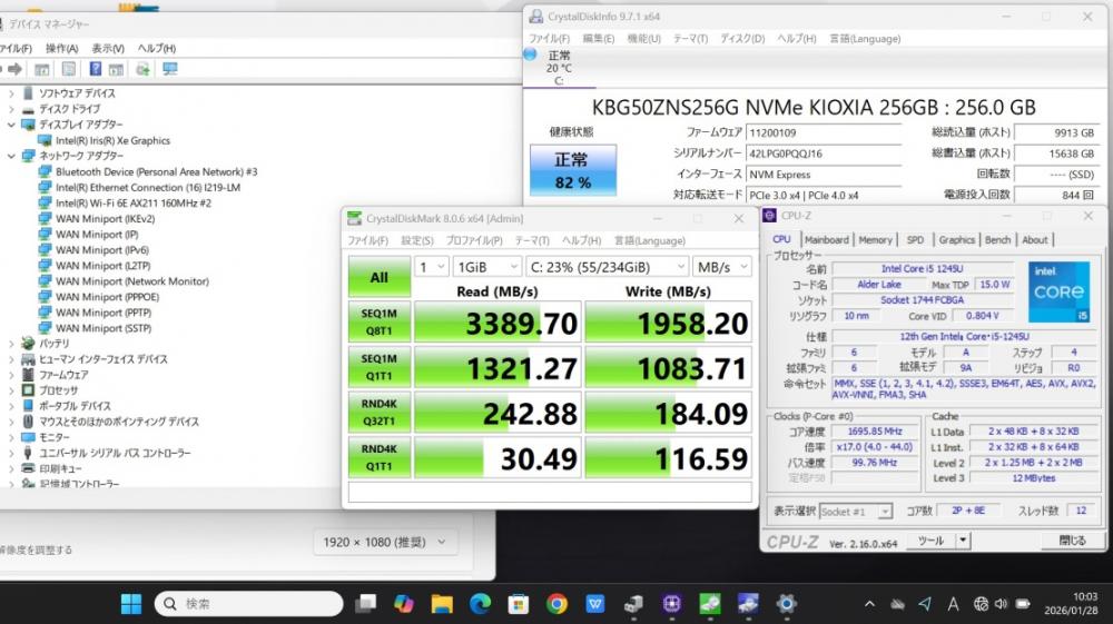 | CPU: 超高速 Intel 10コア 卓越性能 第12世代Core i5-1245u 1.6Ghz、 10コア12スレッド (ターボ・ブースト利用時の最大周波数 4.4GHz) |