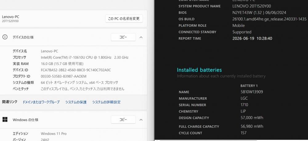 | 型番: Lenovo ThinkPad T14s Gen1 |