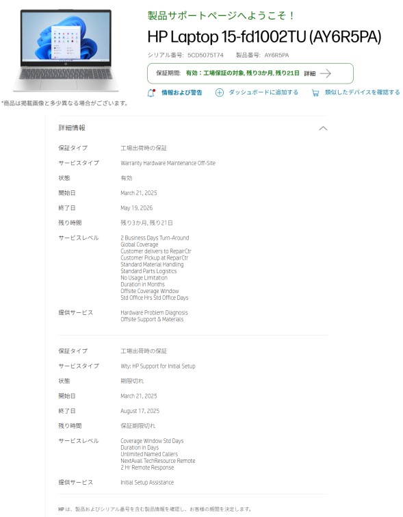 | 型番: HP Laptop 14-FD1002TU |