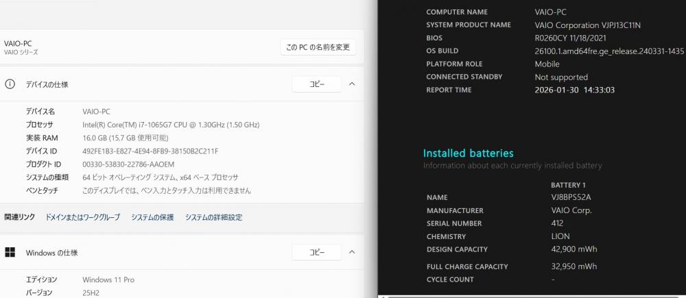 | 型番: SONY VAIO VJPJ13C11N |