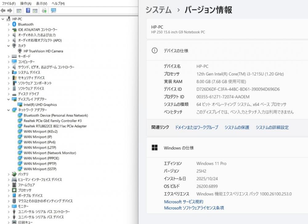 良品 フルHD 15.6型 HP Notebook 250 G9 Windows11 第12世代 i3-1215u 8GB NVMe 256GB-SSD カメラ 無線 Office付き 中古パソコン 管:1427s
