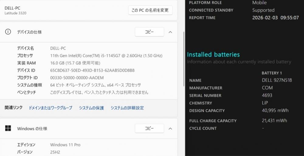 | 型番: DELL Latitude 3320 |