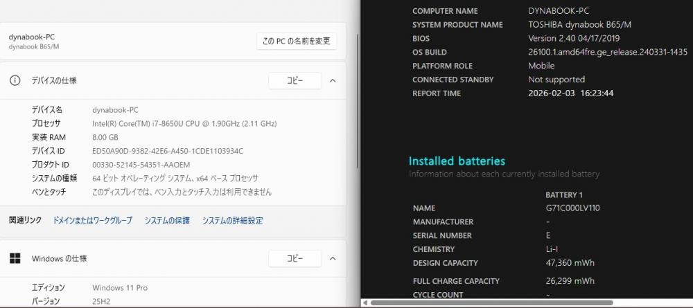 | CPU: 超高速 Intel 高性能 第8世代Core i7-8650U 1.9Ghz、 4コア8スレッド (ターボ・ブースト利用時の最大周波数 4.2GHz) |