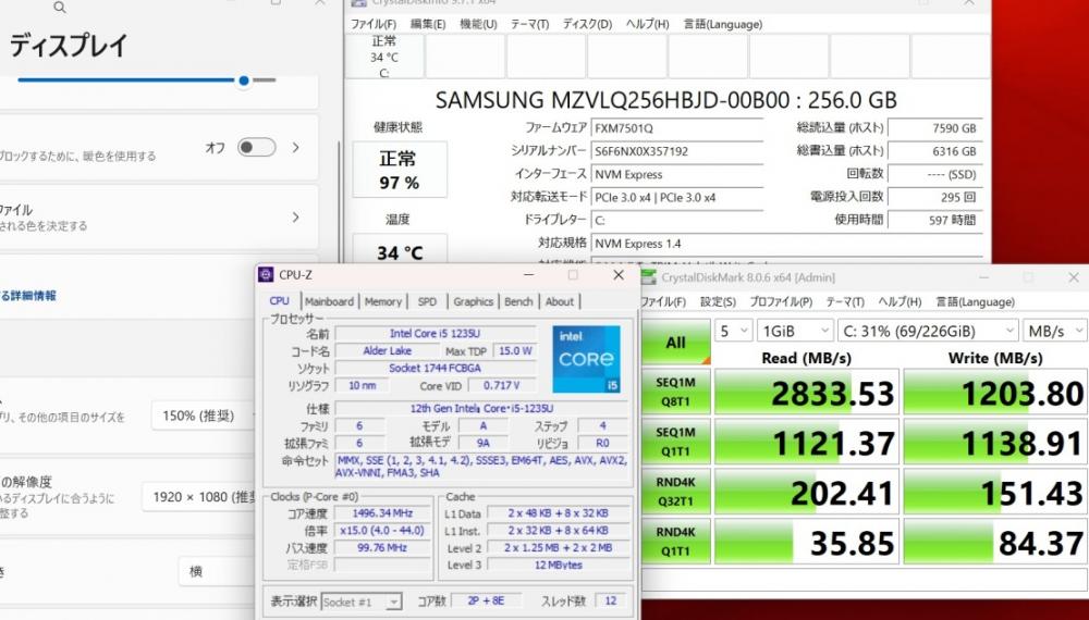 CPU:    超高速 Intel 10コア 卓越性能 第12世代Core i5-1235u 1.3Ghz、 10コア12スレッド (ターボ・ブースト利用時の最大周波数 4.4GHz)