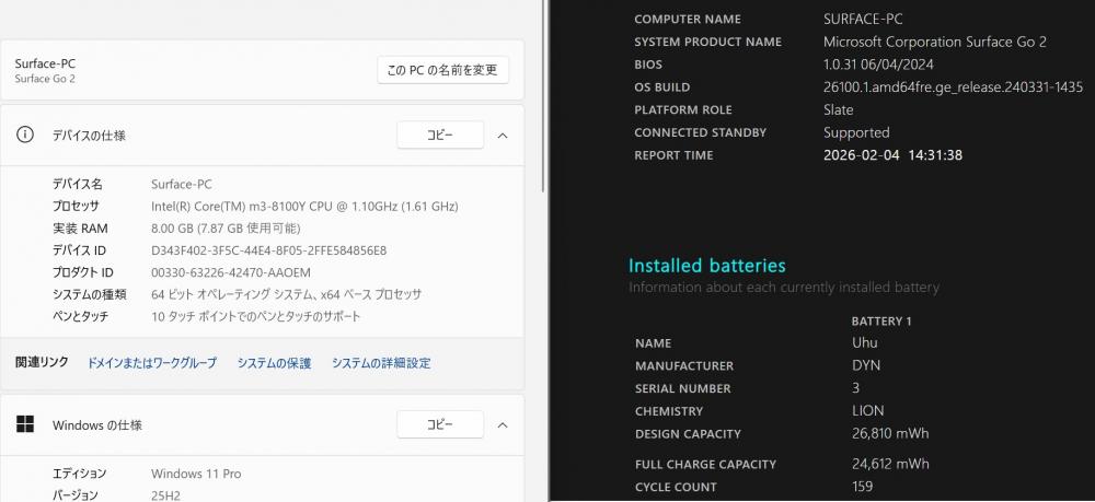 | 型番: マイクロソフト Surface GO2 Model.1927 |