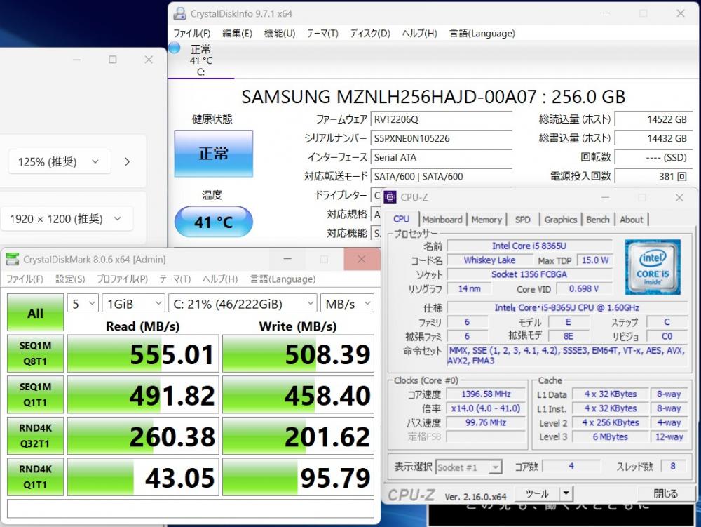 | CPU: 超高速 Intel 高性能 第8世代Core i5-8365U 1.6Ghz、 4コア8スレッド (ターボ・ブースト利用時の最大周波数 4.1GHz) |
