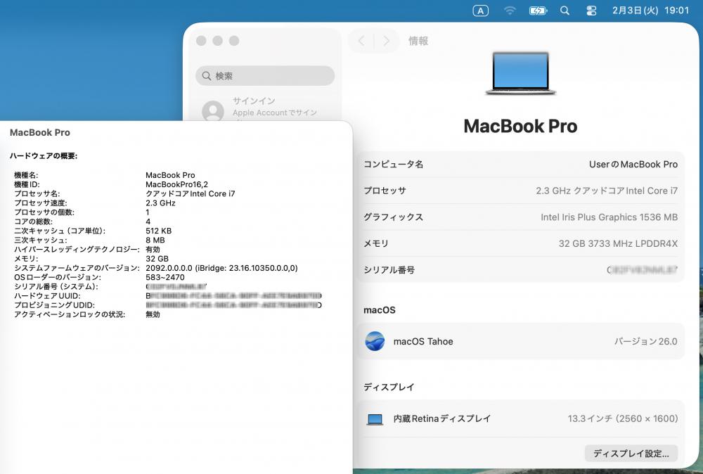 OS: macOS 26 Tahoe ※追加 8000円 [税別]で、正規版Windows 11 Home 64bit(もしくはWindows10 Home 64bit)を追加インストールできます、プロダクトシール付属。 ※OSの切り替え方法 rainbowjp.net/kirikae.html |
