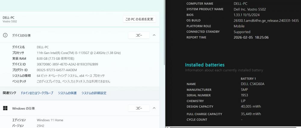 | 型番: DELL Vostro 5502 |