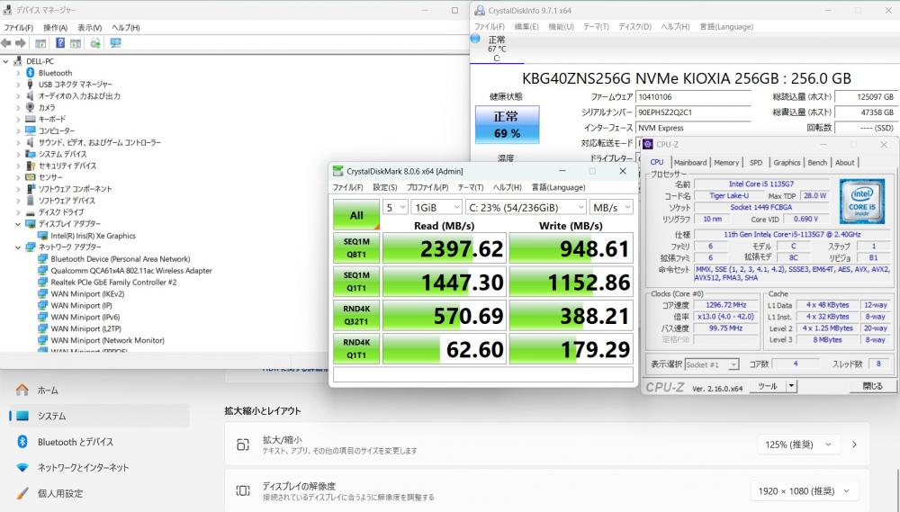 | CPU: 超高速 Intel 卓越性能 第11世代Core i5-1135G7 2.4Ghz、 4コア8スレッド (ターボ・ブースト利用時の最大周波数 4.2GHz) |
