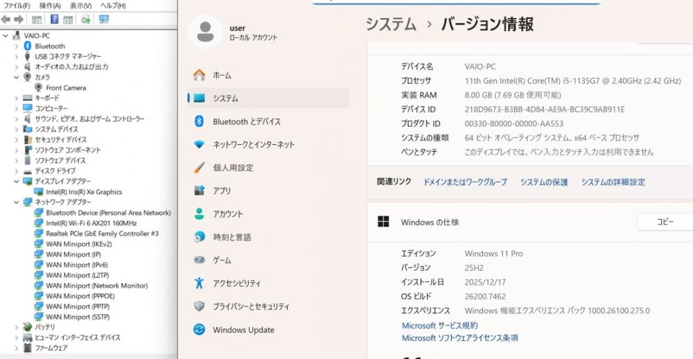 | 型番: SONY VAIO VJPK211 |