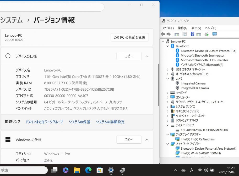 顔認証対応 Webカメラ搭載、Bluetooth搭載、指紋センサー。