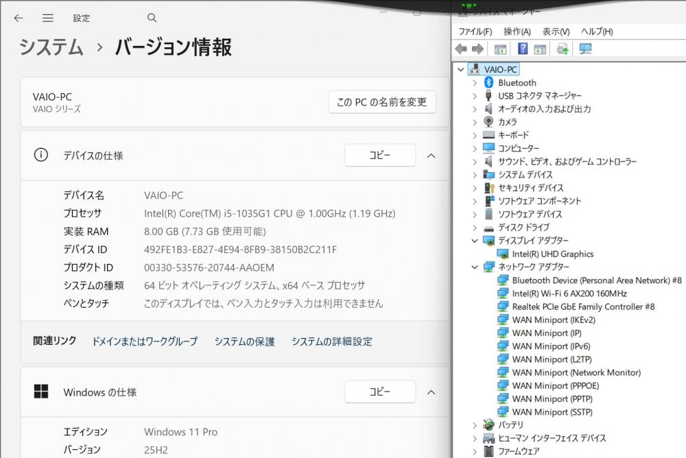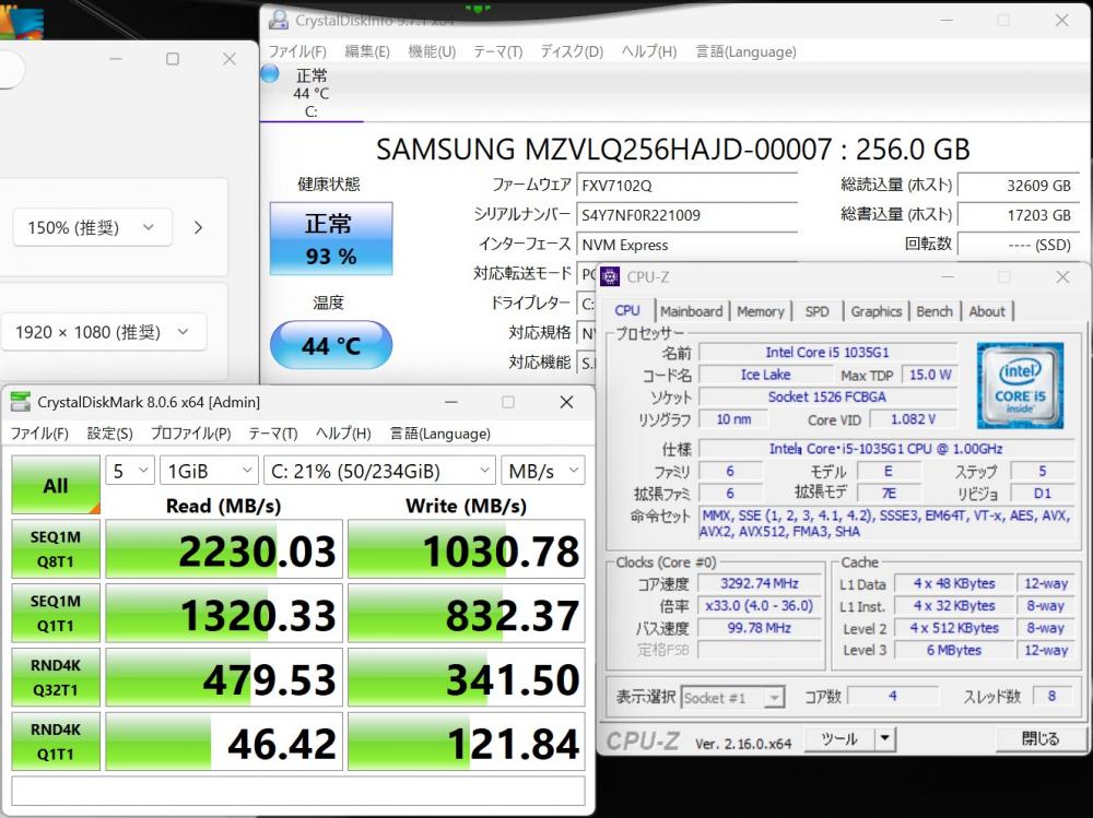 | CPU: 超高速 Intel 超高性能 第10世代Core i5-1035G1 1.0Ghz、 4コア8スレッド (ターボ・ブースト利用時の最大周波数 3.6GHz) |