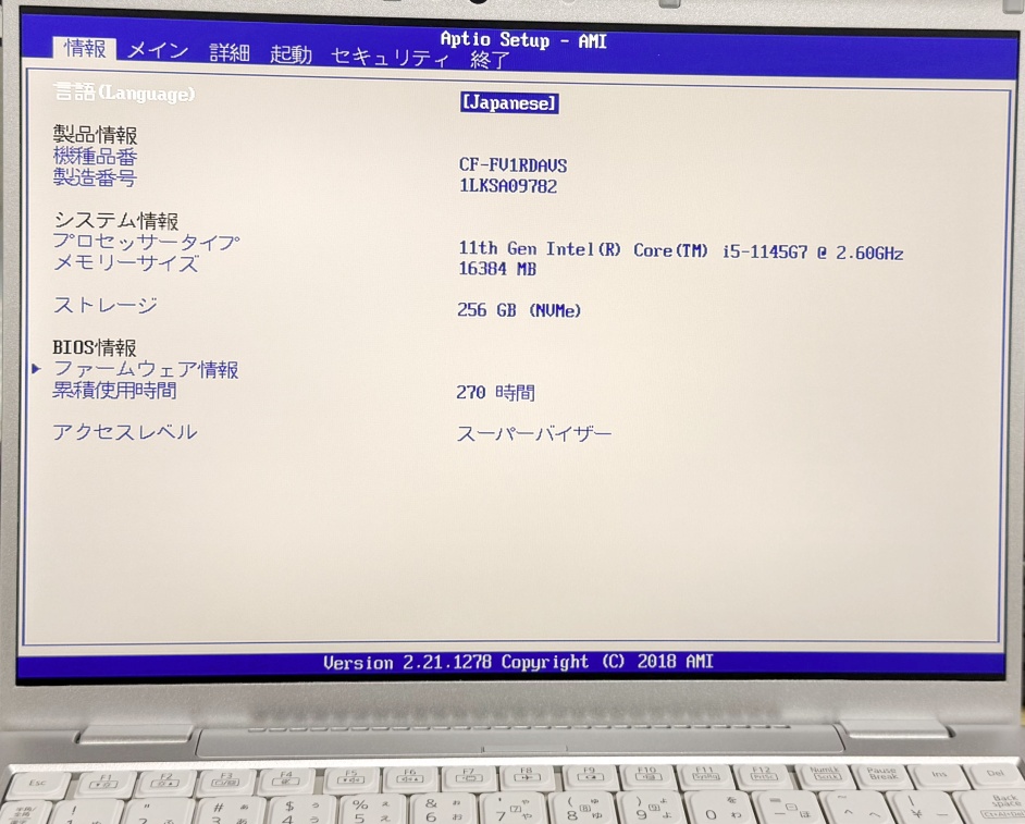 | 型番: Panasonic Let's Note CF-FV1RDAVS |