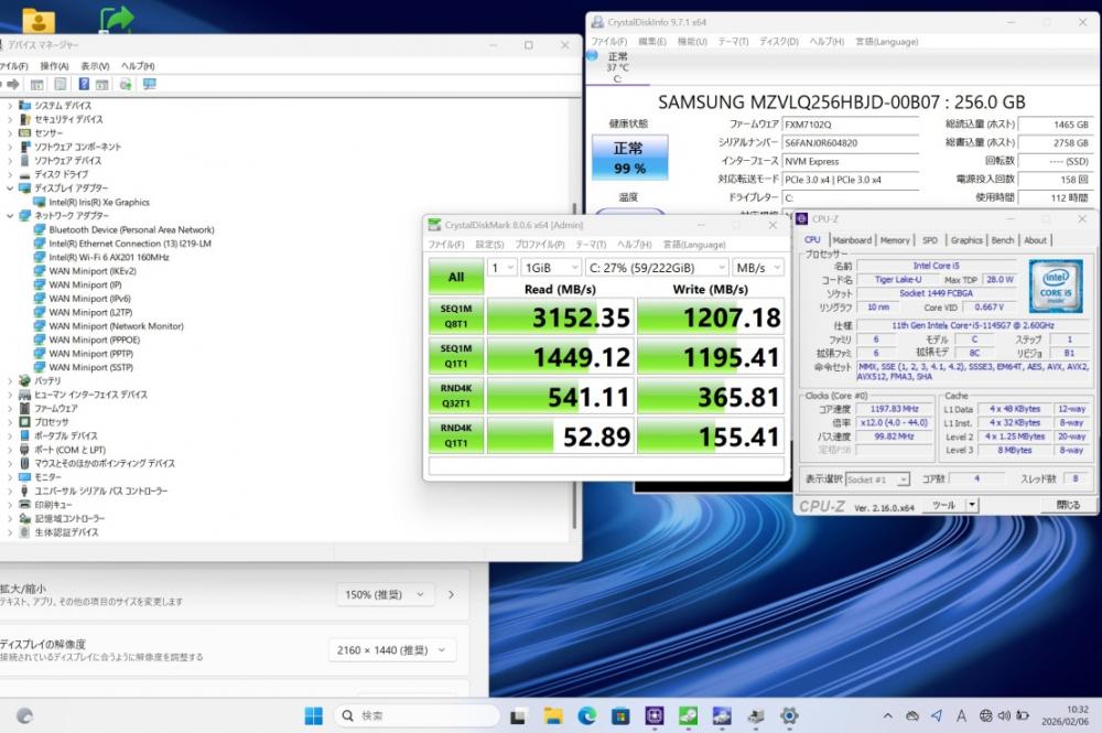 | CPU: 超高速 Intel 卓越性能 第11世代Core i5-1145G7 2.6Ghz、 4コア8スレッド (ターボ・ブースト利用時の最大周波数 4.4GHz) |