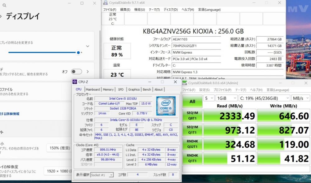 CPU:    超高速 Intel 超高性能 第10世代Core i5-10310u 1.7Ghz、 4コア8スレッド (ターボ・ブースト利用時の最大周波数 4.4GHz)
