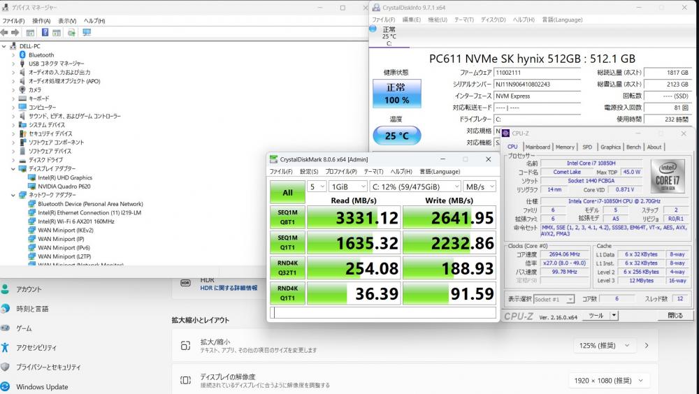 使用232時間 良品 フルHD 15.6型 DELL Precision 3551 Windows11 第10世代 i7-10850H 32GB NVMe 512GB-SSD NVIDIA Quadro P620 カメラ 無線Wi-Fi6 Office付き 中古パソコン 管:1350m
