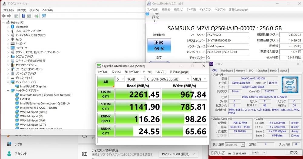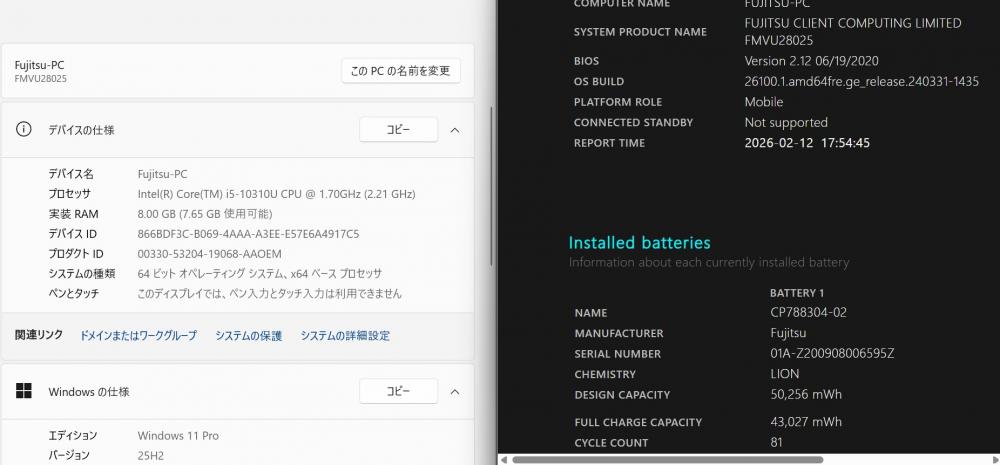 | CPU: 超高速 Intel 超高性能 第10世代Core i5-10310U 1.7Ghz、 4コア8スレッド (ターボ・ブースト利用時の最大周波数 4.4GHz) |