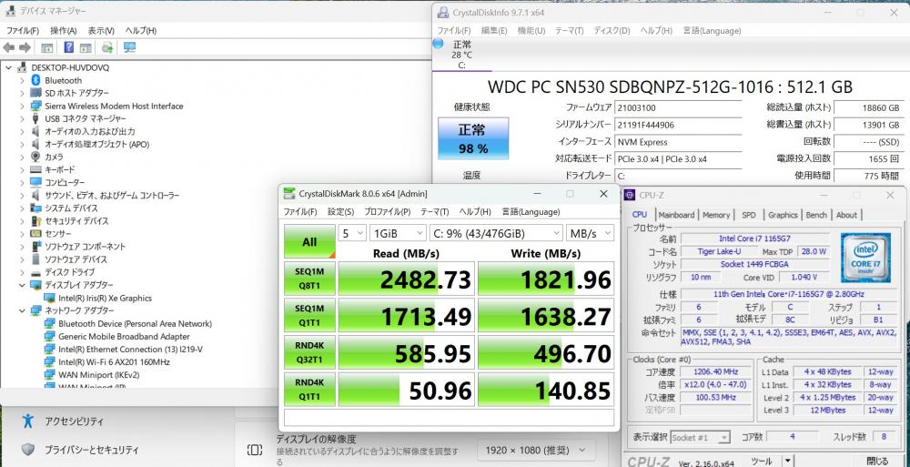| CPU: 超高速 Intel 卓越性能 第11世代Core i7-1165G7 2.8Ghz、 4コア8スレッド (ターボ・ブースト利用時の最大周波数 4.7GHz) |