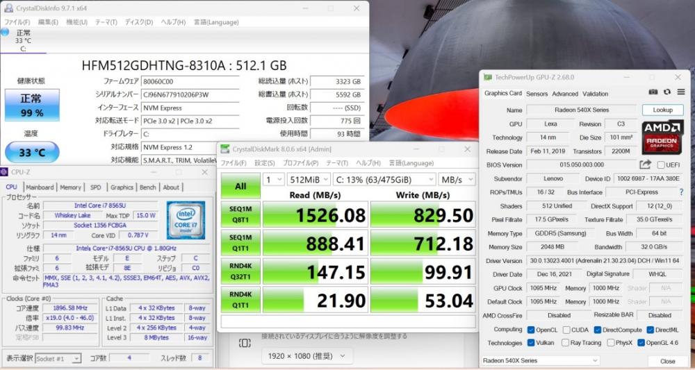 | ハードディスク: 爆速NVMe式 SSD 512GB超高速ドライブを搭載 静かで耐衝撃性に優れ、OSやプログラムなどのソフトの起動速度が大幅に高速化します!! |