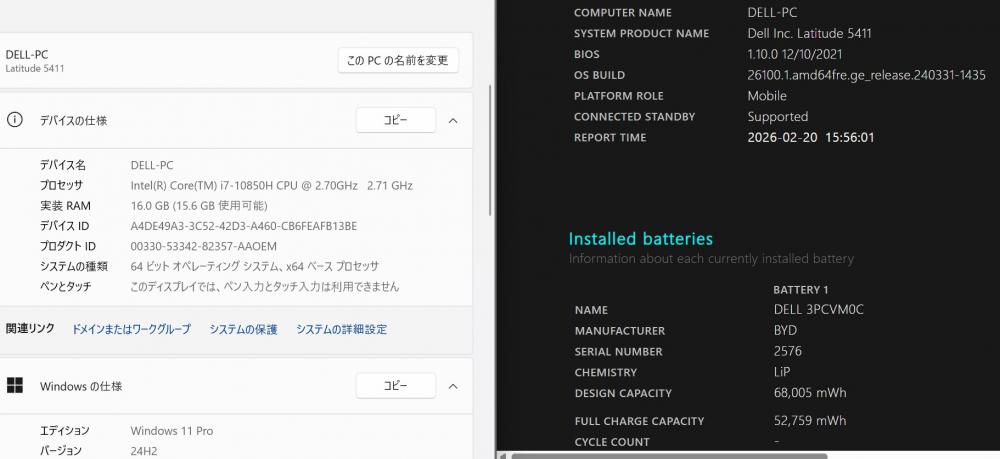 | 型番: DELL Latitude 5411 |
