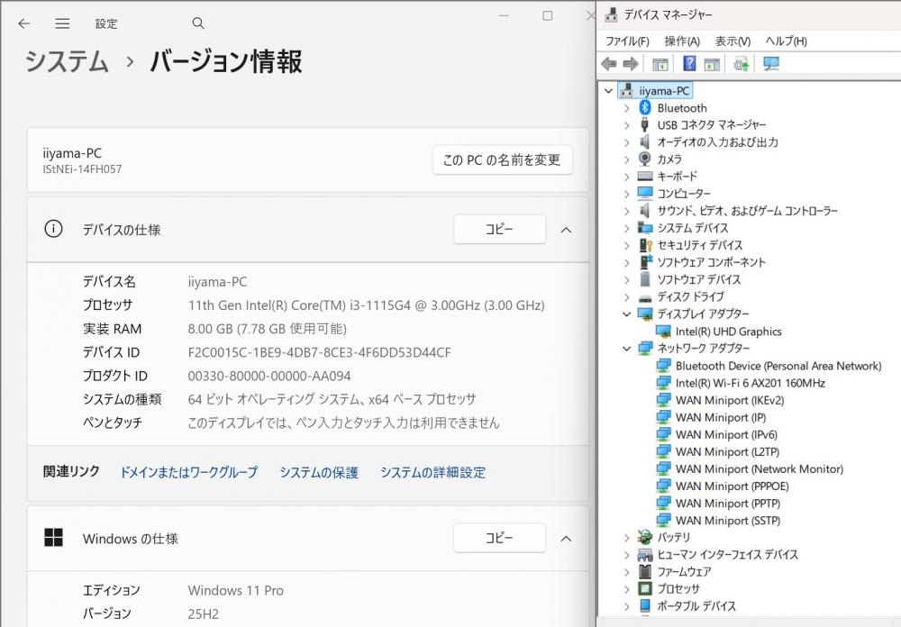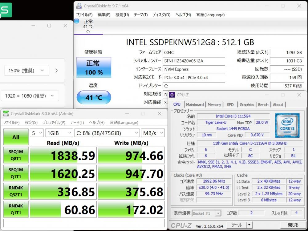 | CPU: 超高速 Intel 卓越性能 第11世代Core i3-1115G4 3.0Ghz、 2コア4スレッド (ターボ・ブースト利用時の最大周波数 4.1GHz) |