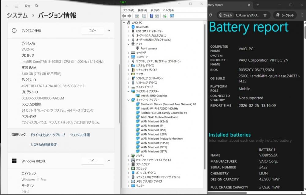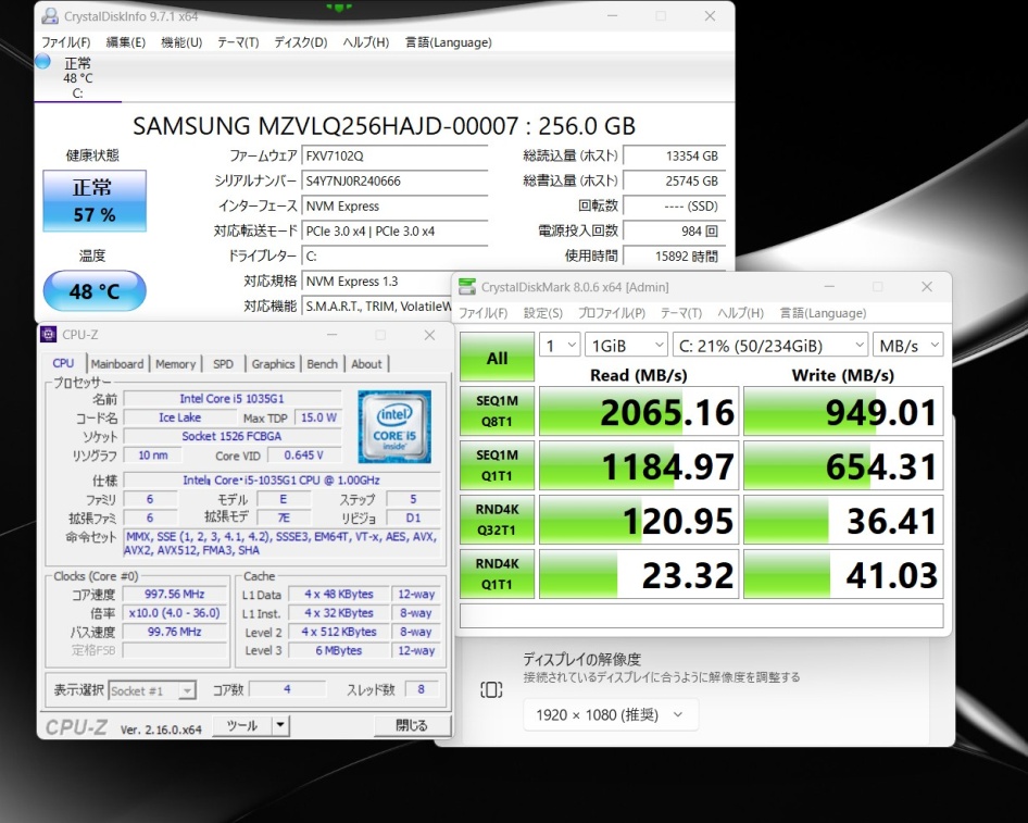 | CPU: 超高速 Intel 超高性能 第10世代Core i5-1035G1 1.0Ghz、 4コア8スレッド (ターボ・ブースト利用時の最大周波数 3.6GHz) |