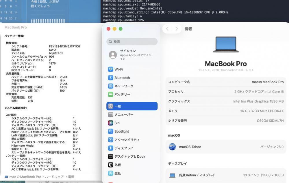 OS: macOS 26 Tahoe ※追加 8000円 [税別]で、正規版Windows 11 Home 64bit(もしくはWindows10 Home 64bit)を追加インストールできます、プロダクトシール付属。 ※OSの切り替え方法 rainbowjp.net/kirikae.html |