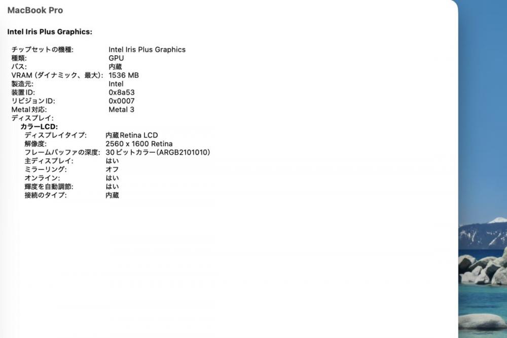 | ディスプレイ: 2K対応 13.3インチ光沢液晶 高輝度 広視野角 LEDバックライト 2560 x 1600解像度 Retina ディスプレイ搭載により文字や写真を滑らかに表現することができます。———— |
