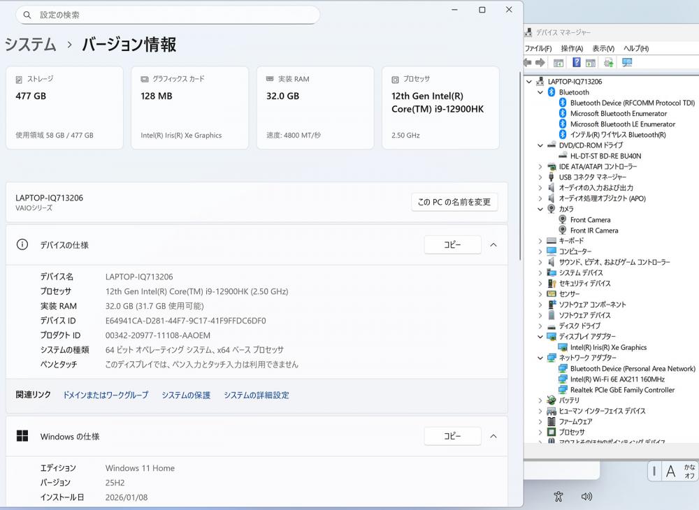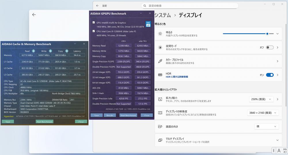 | ディスプレイ: 4K対応 15.6インチ高輝度 広視野角 LEDバックライト 3840 x 2160解像度———— 更に、プロセッサー内蔵グラフィックス Intel Iris Xe Graphics 96EU (Alder Lake) 搭載、省エネの同時に演算性能は従来より高く、ゲーミングにも活躍できます。 ※ Intel社のデザイン由来でパソコンのメモリーが 2枚で構成の場合は、内蔵グラフィックスの名前は「Intel Xe」表示されます。1枚構成の際その「Intel Xe」は「Intel UHD」の名前として表示します。(実際FP32演算能力は変わらない) |