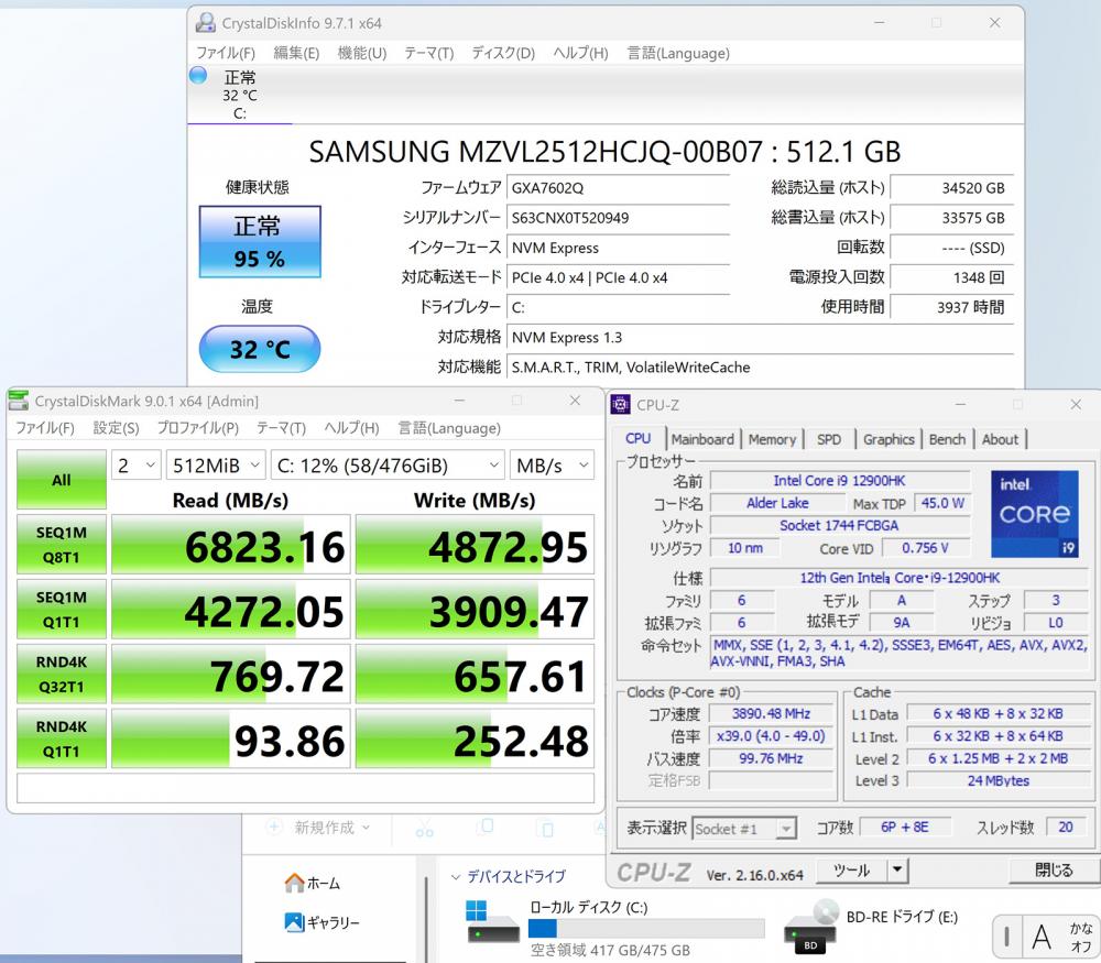 | CPU: 超高速 Intel 14コア 卓越性能 第12世代Core i9-12900HK 2.5Ghz、 14コア20スレッド (ターボ・ブースト利用時の最大周波数 5.0GHz) |