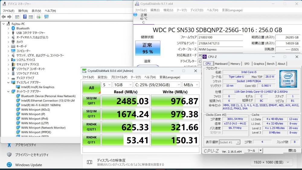 | CPU: 超高速 Intel 卓越性能 第11世代Core i5-1145G7 2.6Ghz、 4コア8スレッド (ターボ・ブースト利用時の最大周波数 4.4GHz) |