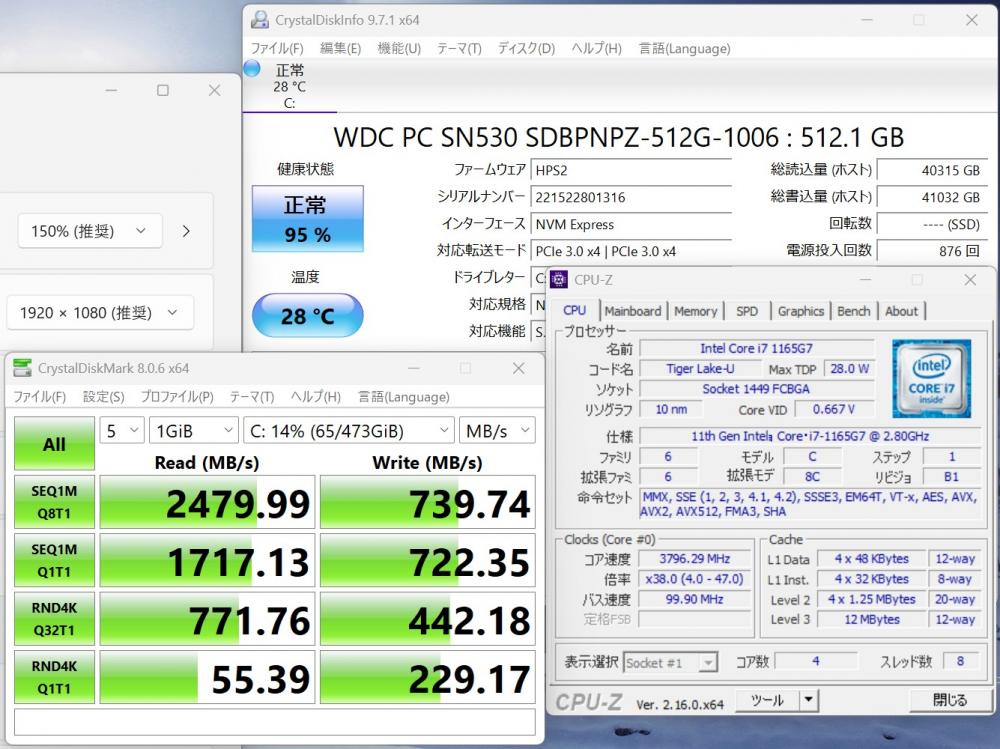 | CPU: 超高速 Intel 卓越性能 第11世代Core i7-1165G7 2.8Ghz、 4コア8スレッド (ターボ・ブースト利用時の最大周波数 4.7GHz) |