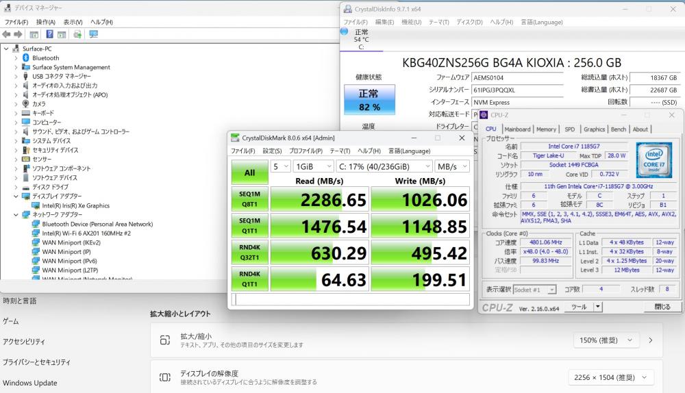 CPU:    超高速 Intel 卓越性能 第11世代Core i7-1185G7 3.0Ghz、 4コア8スレッド (ターボ・ブースト利用時の最大周波数 4.8GHz)